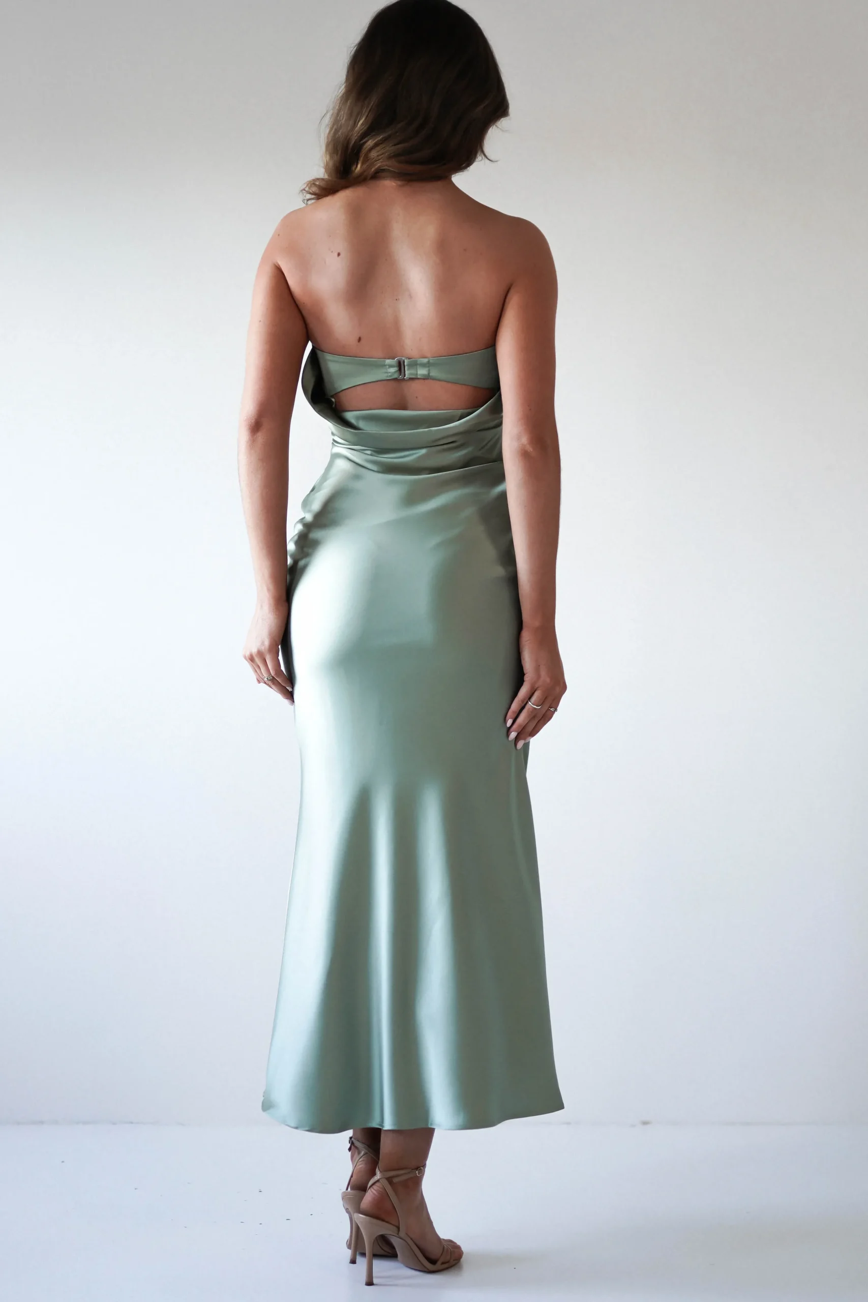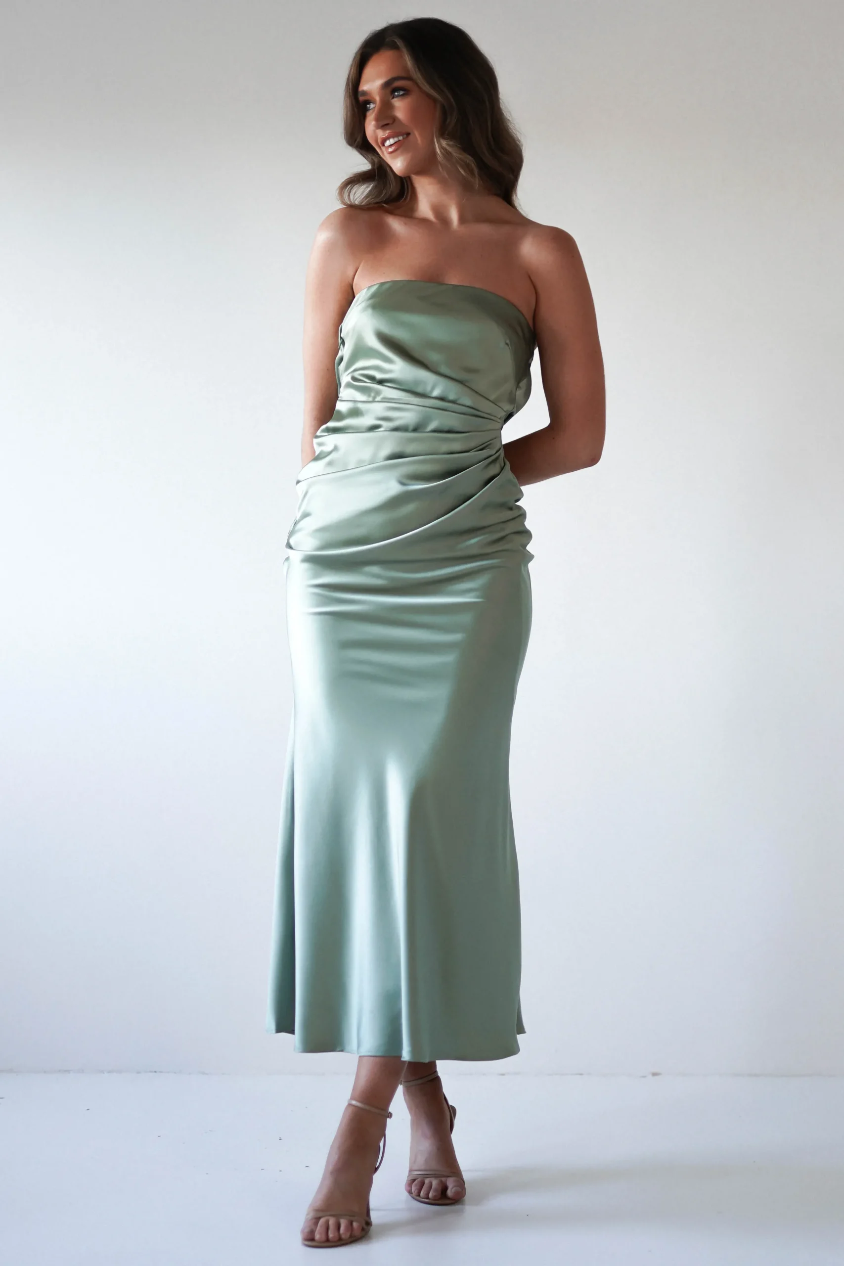 Turn heads in elegance with the stunning satin gown. Crafted from luxurious satin touch fabric, this strapless gown features a sleek, figure-hugging silhouette, ruched detailing, and a flared hemline for added drama. Perfect for weddings, debs, prom or any special occasion where sophistication is key.
