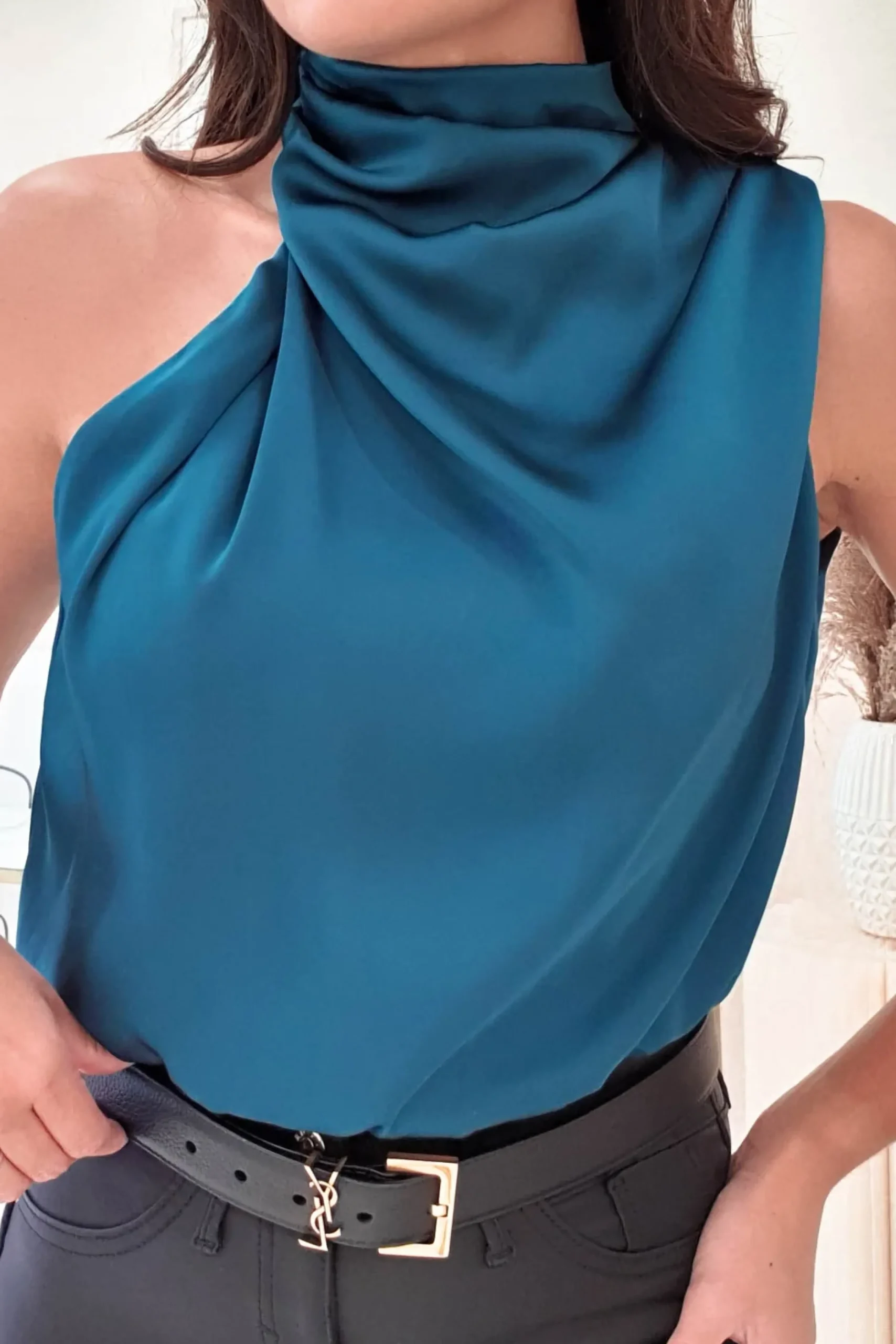 - Elegant high neckline detail
